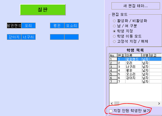 이때 지정 안된 학생만 보기를 풀어야 지정된 학생들의 자리를 옮길 수 있습니다!!